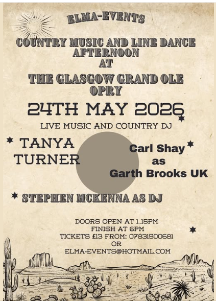 Contact Elma Robertson on 07831 500681 or email elma-events@hotmail.com for tickets
